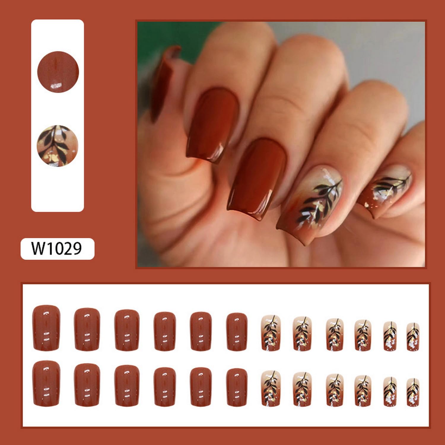 In conclusion, if you want to elevate your style and embrace the fall spirit, these Coffee Brown Full Cover False Nails with their leaf patterns are the perfect choice they are professional-grade quality, easy to carry functional, stunning autumn-inspired designs and are unmatched in terms of convenience and beauty -Don’t miss the chance to dress up your nails with autumnal beauty that offers combination – get your set today and let the ringlets do the talking.